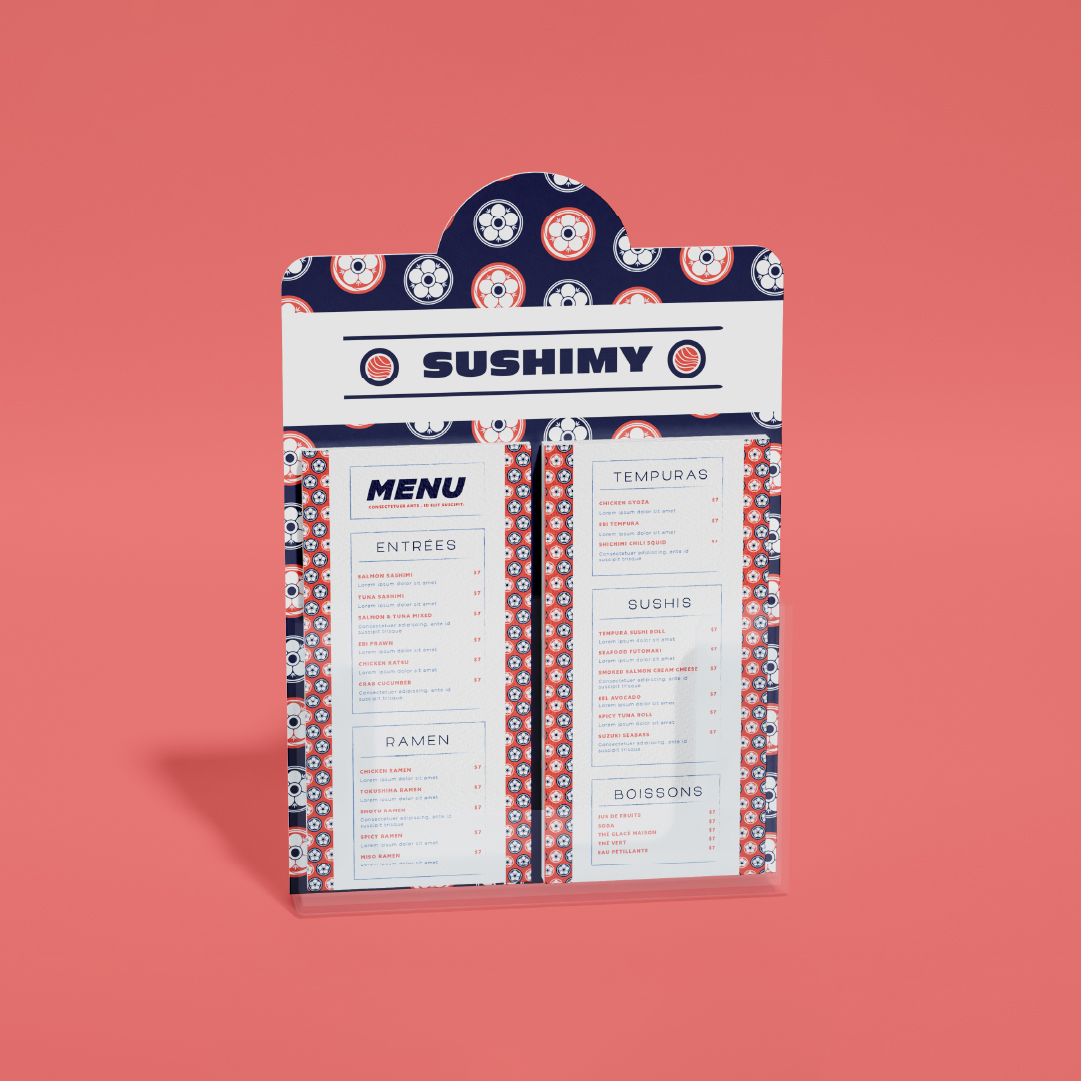 Afin de se démarquer de la concurrence présente dans le Pays de Gex, j’ai proposé à Sushimy un branding audacieux, avec des motifs colorés et accessibles qui sauront dynamiser les nombreux supports et packagings que cette structure souhaite développer.